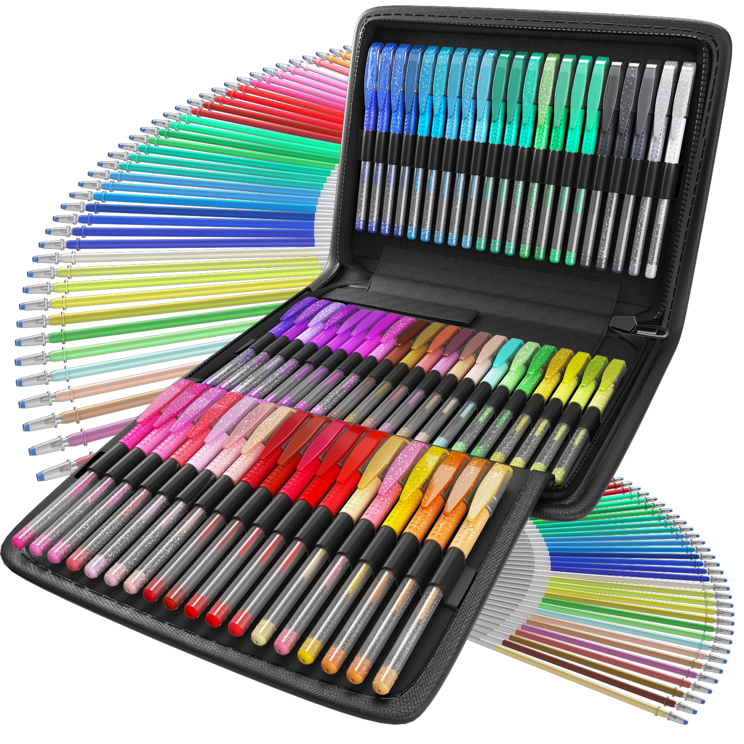 Art Werk 100 Count Glitter Gel Pens for Doodling, Drawing, Adult Glitter Gel Pen Set  It will last longer for.  lyuvie 160 pack glitter gel pens set,80 coloured gel pens with 80 glitter refills & 1 adult colouring books for writing drawing. 4/5         (19k)  glitter gel pens, 100 color glitter pen set for making. All 100 colors are unique and we add 30% more ink.   this is large set of 100. Glitter Gel Pen Set.
